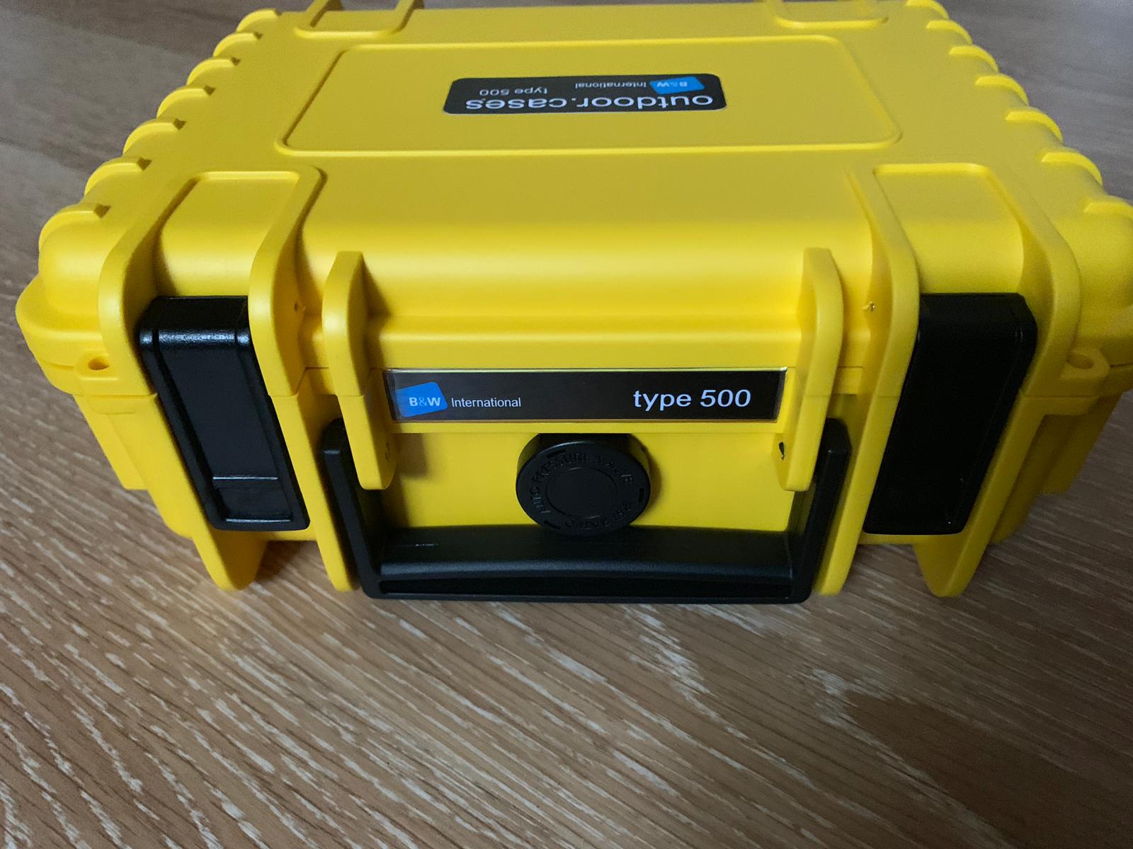 Für die Aufbewahrung und den sicheren Transport habe ich mir einen robusten Koffer der Marke B & W outdoor cases, Typ 500, in deren Onlineshop bestellt. Das Schaumstoffmaterial im Innenbereich ist individuell anpassbar, so dass das Messgerät hier einen genau angepassten Platz finden konnte.